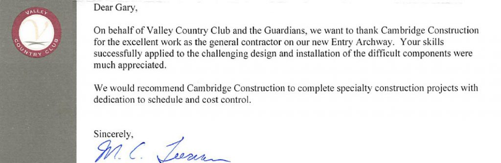 Entry Archway – Valley Country Club by Shari Beaudette | Feb 3, 2020 | Construction | 0 comments We can’t wait until the weather is nicer to capture photos of the finished result. Thanks Valley Country Club!